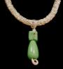Genuine glass beads in a soft light green shade are combined to make a beautiful hand crafted pendant that easily slides over our Sterling Silver knitted necklace to change the look. Interchangeable with other pendants as well. Mounted on solid Sterling Silver wire. Approx. length of pendant is 1 7/8 in. long, including wire top and bottom. Approx width is 3/8 in.